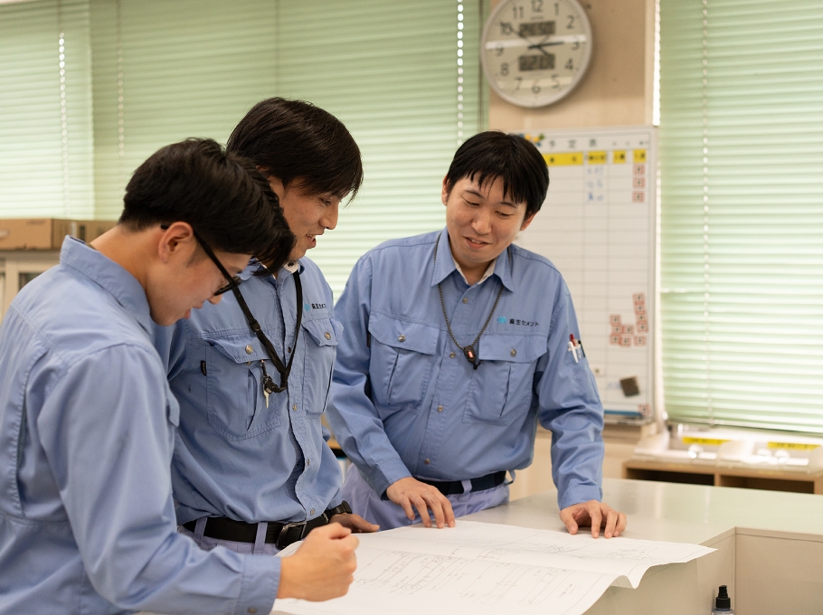 働き始めて感じたのは、麻生セメントには部署間の垣根がなく、相談しやすい環境があるということです。同じ部署の上司や先輩だけでなく、他部署の方にも気軽に声をかけられる雰囲気があって、職場全体が一体となって動いている感覚があります。