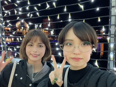 2枚目の写真は、年末に帰省したタイミングで地元が同じ先輩と食事に行った時のものです。お互い猫が好きで音楽の好みも近いので、仕事の話だけでなく趣味の話もよくします。部署は違いますが入社当初からお世話になっています。チャレンジ精神旺盛で打たれ強く、冷静に仕事をこなす先輩の姿は、私の憧れです。
